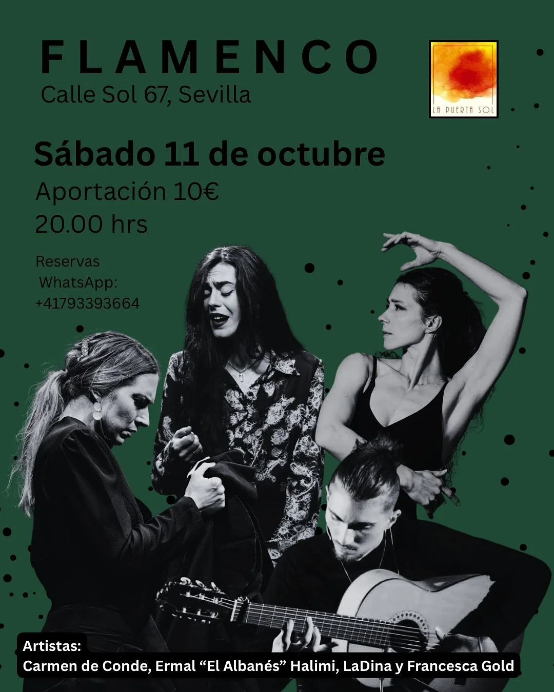 Tablao Flamenco mit Francesca Gold und LaDina Bucher (Tanz), Carmen de Conde (Gesang) und Ermal el albanés Halimi (Gitarre).
